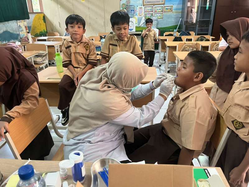 Kegiatan Pencegahan Gigi Berlubang Dengan Pemberian Fluoride Pada Anak di SD Negeri Pinang 5