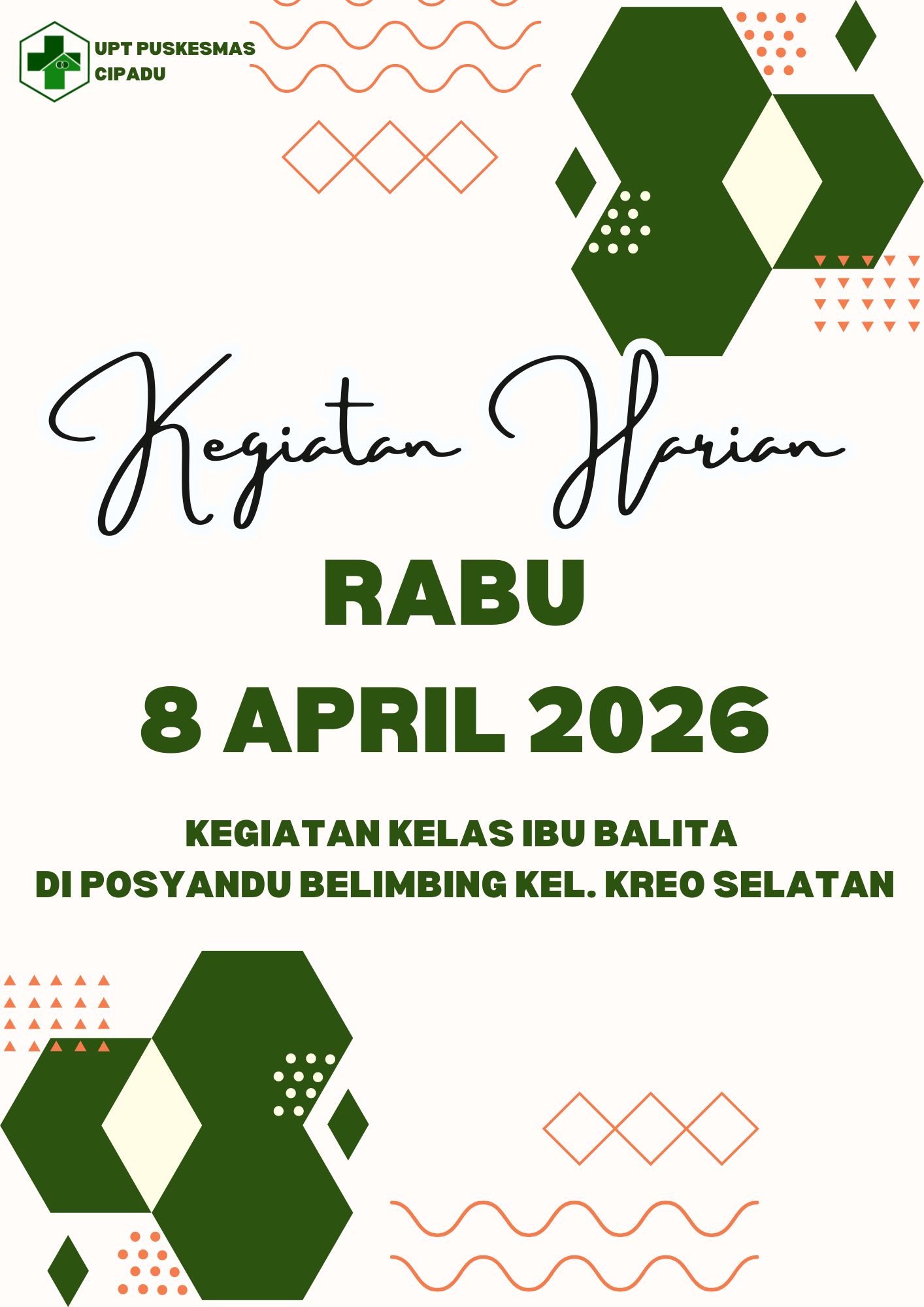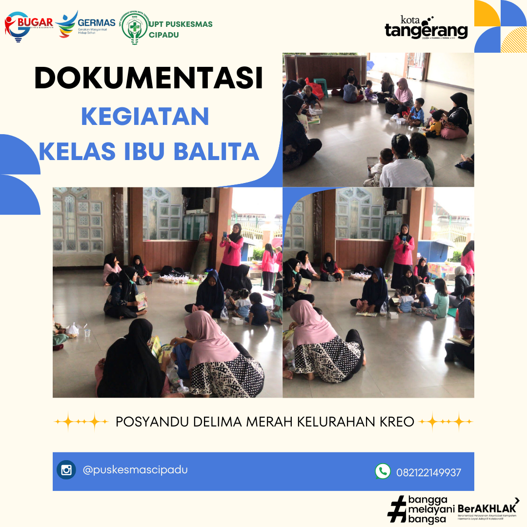 Pada hari Kamis, 9 Januari 2025, UPT Puskesmas Cipadu mengadakan kegiatan Kelas Ibu Balita di Posyandu Delima Merah, Kelurahan Kreo. Kegiatan ini bertujuan untuk meningkatkan pengetahuan dan keterampilan para ibu dalam mengasuh dan merawat balita, sehingga tumbuh kembang anak dapat berjalan optimal.