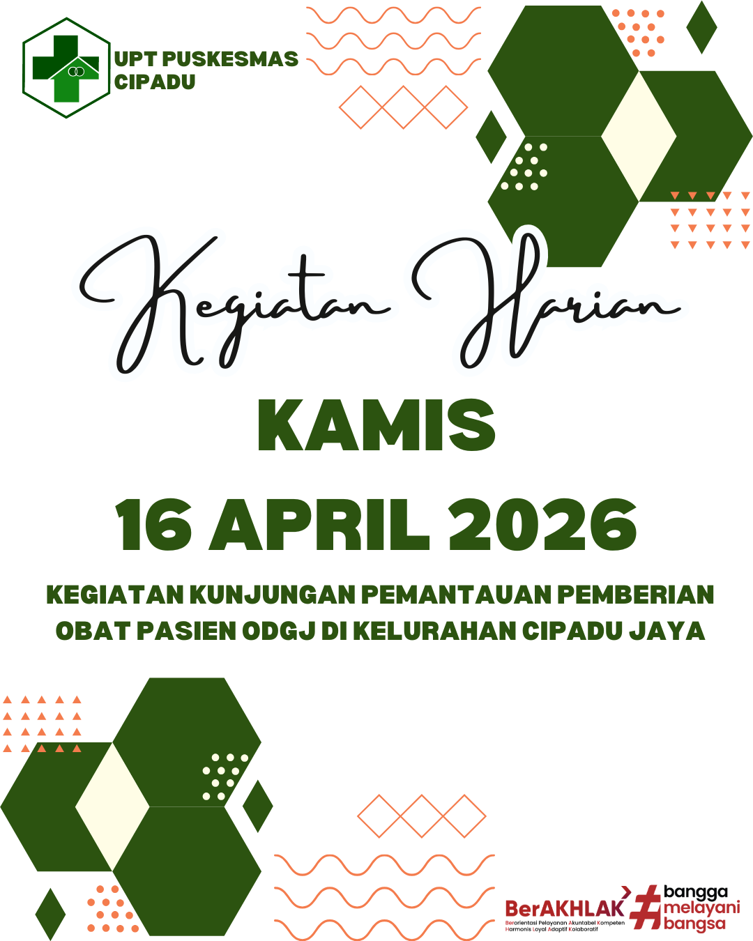 Pada hari Jumat, 10 April 2026, UPT Puskesmas Cipadu melaksanakan kegiatan Posyandu ILP sebagai bagian dari upaya peningkatan pelayanan kesehatan terpadu bagi masyarakat. Kegiatan ini menjadi sarana penting dalam memantau dan menjaga kesehatan warga secara berkelanjutan, khususnya bagi ibu, anak, dan kelompok rentan.