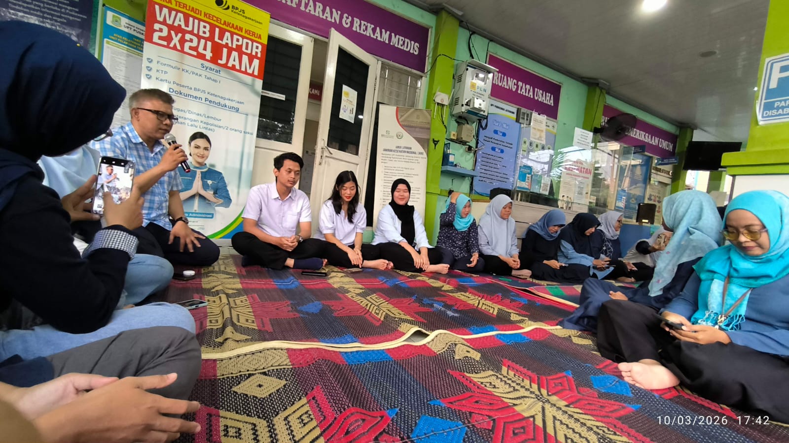 UPT Puskesmas Jatiuwung mengadakan kegiatan buka puasa bersama seluruh pegawai pada 10 Maret 2026. Kegiatan ini dilaksanakan secara sederhana dan penuh kebersamaan di selasar Puskesmas Jatiuwung.